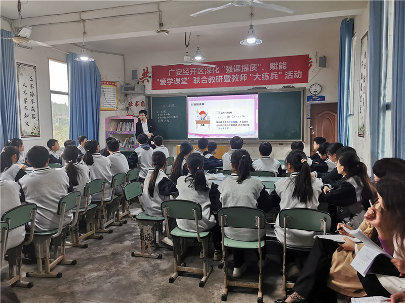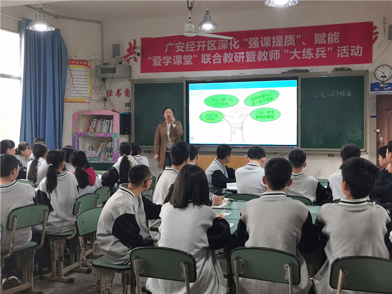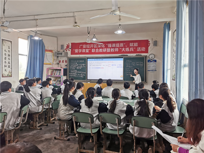 四川新闻网消息 最美人间四月天,岗位练兵促成长。为进一步深化新课标下课堂教学研究与实践,深入推进“双减”工作,全面提升教师教育教学能力, 4月13日,广安经开区深化“强课提质”、赋能“爱学课堂”联合教研暨教师“大练兵”(初中数学学科)活动在护安初中举行。本次活动由经开区社事局主办,护安初中承办,区内五所学校的老师各施其法,展现各自风采。