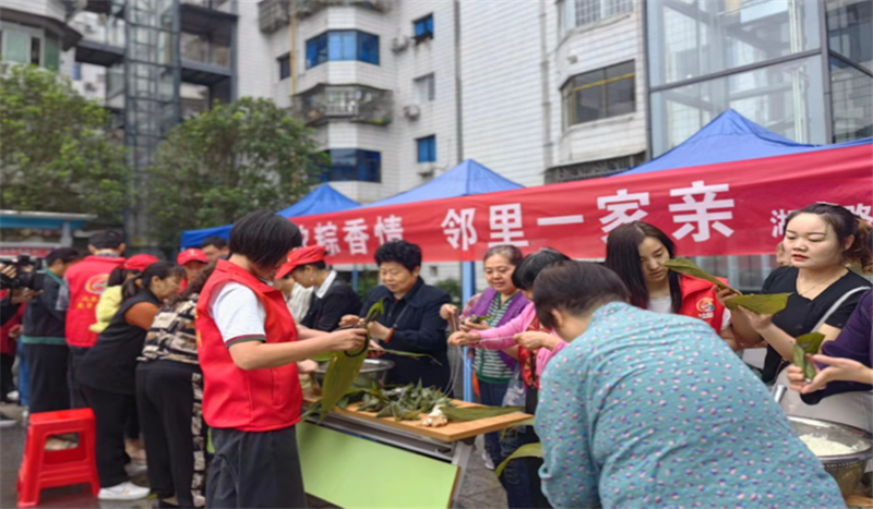 四川新闻网消息 6月16日一早,广安市广安区北辰街道办事处湖滨路社区建设路38号小区院里绿粽飘香,社区干部、网格员、志愿者们正组织小区居民开展端午包粽子送温暖活动,如火如荼,好不热闹。