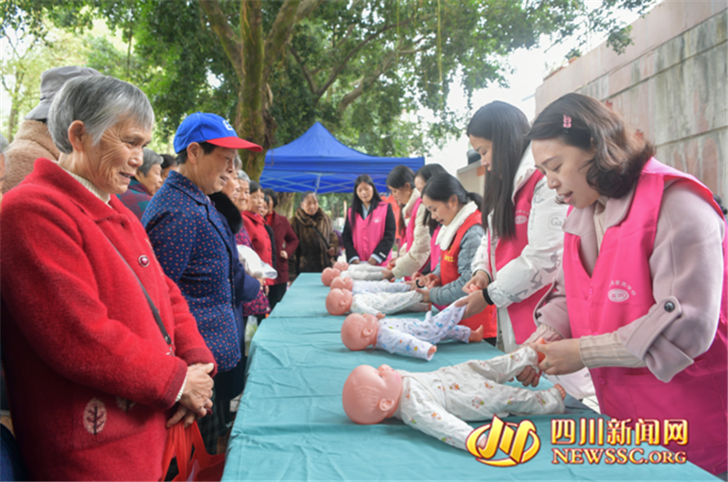 | 11月15日,广安区家政工作人员在北辰街道湖滨路社区向居民示范讲解育婴技能。 |