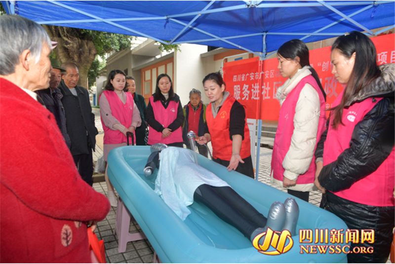 四川新闻网消息(冉鹏 张国盛 齐元 摄影报道)“各位居民朋友,我们为社区失能卧床老人推出了公益上门助浴服务,通过为老人沐浴清洗身体,让老人维持舒适体面的晚年生活……”11月15日,在广安市广安区北辰街道湖滨路社区家政服务点位,广安賨州姐妹家政服务公司负责人王芳向围观的社区居民宣传道。