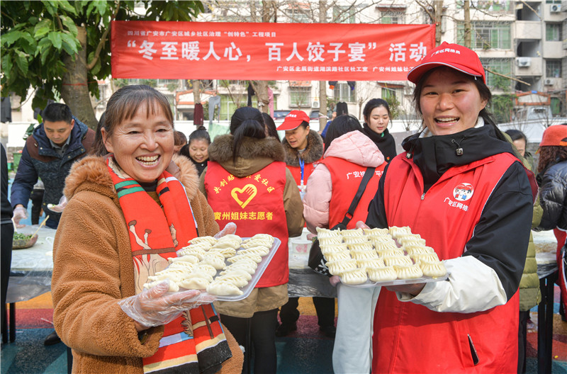 四川新闻网消息 冬至是二十四节气之一,自古以来,各地群众都有包饺子的习俗。12月22日上午,广安区民政局、广安区北辰街道湖滨路社区社工室、广安賨州姐妹社工室的志愿者们来到北辰街道湖滨路社区斌鑫雅居园小区,同100余名小区居民一起开展“冬至暖人心 百人饺子宴 ”主题活动,大家通过一起参与包饺子,共同感受中国传统节日的无限魅力。
