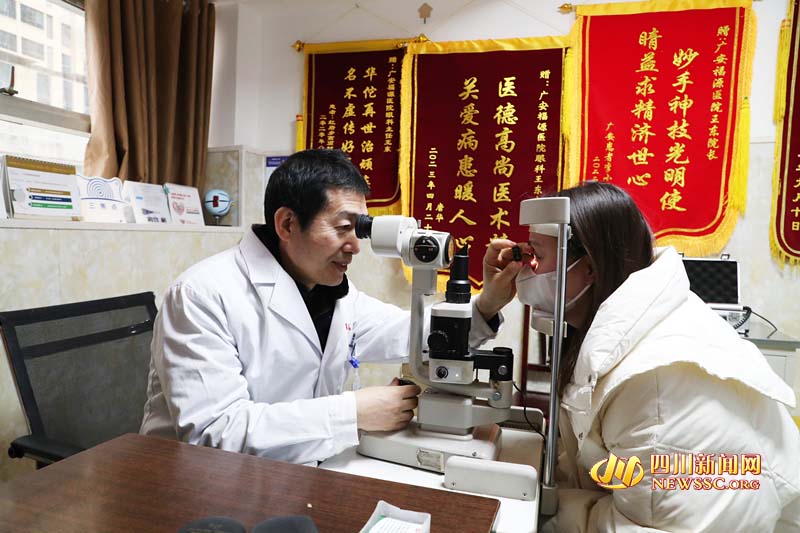 四川新闻网-首屏新闻广安12月26日讯(田祖国 廖小兵 刘波 摄影报道)每年为2000余名眼科病人做手术,免费让30名贫困白内障患者重见光明。广安区政协常委、区新联会会长、广安市名医、广安福源医院董事长王东带领团队发出正面声音弘扬正能量,组织医务人员每年送医送药10余次。