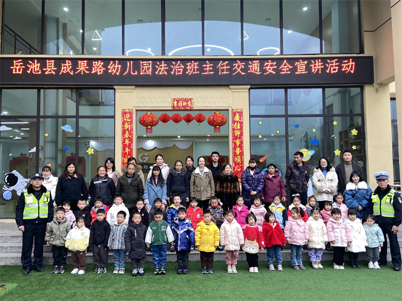 1月8日至12日,岳池县公安局交警大队精心安排,组织全体法治班主任前往第一幼儿园、东湖幼儿园、滨河东路幼儿园、师达实验学校幼儿园、新风路幼儿园、成果路幼儿园等校园为幼儿及家长上寒假安全教育课。