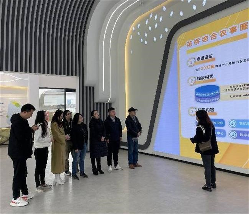 综合农事服务中心以智能育秧、农机服务、粮食加工、数字管理四大功能为基础,主要为花桥万亩粮油产业基地提供产加销一体化综合农事服务。推行综合社会化服务,粮食储量达2000吨、年加工稻米1000余吨、育秧育苗播栽面积10000亩;推动农业信息化发展,实现生产成本降低15%以上,亩均增收200元以上,化肥农药用量减少10%以上;实现利益多元化联结,带动30余个规模种粮业主、6万余名农户增收。