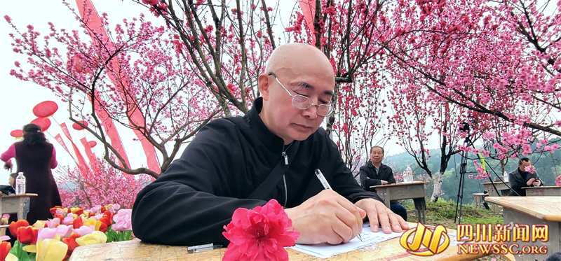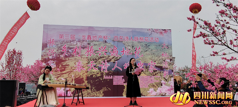 四川新闻网消息(冉鹏 摄影报道)人间最美三月天,百花争艳竞相开。3月23日,广安市岳池县第三届“龙鑫地产杯”百名诗人咏桃花活动在岳池农家生态文化旅游区(白庙镇郑家村)桃花岛举行。来自川渝两地的百名诗词爱好者竞“登”桃花岛,以桃花为题创作吟诵,用优美的诗句赞美春天的农家。