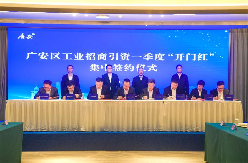 四川新闻网消息(张国盛 记者 游伍琼 摄影报道)3月27日下午,广安区举行工业招商引资一季度“开门红”集中签约仪式,此次由成都安可信电子股份、广东广商聚能科技等企业签约的10个工业项目,投资总金额达70.6亿元,涉及装备制造、新型材料、电子信息、现代轻工等多个行业领域。