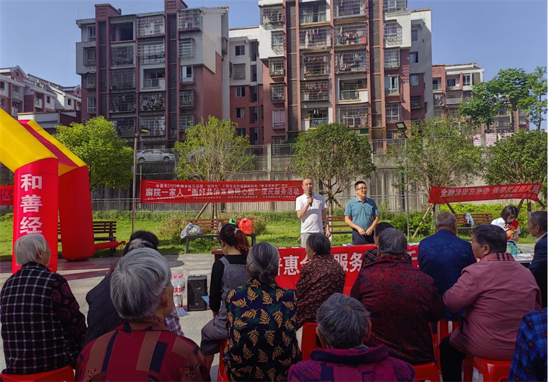 2024年5月13日上午,在华蓥市民政局指导下,廨院社区开展“廨院一家人‘画好共治互助同心圆’”便民服务活动,这次活动由多个部门和企业联合呈现,包括让爱回家协会、中国银行、正和祥药房、骨康堂以及华蓥市消防救护队等,还有多支志愿服务队如红邻家院、红管家志愿、红太阳志愿服务队等,他们们齐聚于廨院社区,为居民们带来了一系列的便民服务与关怀。