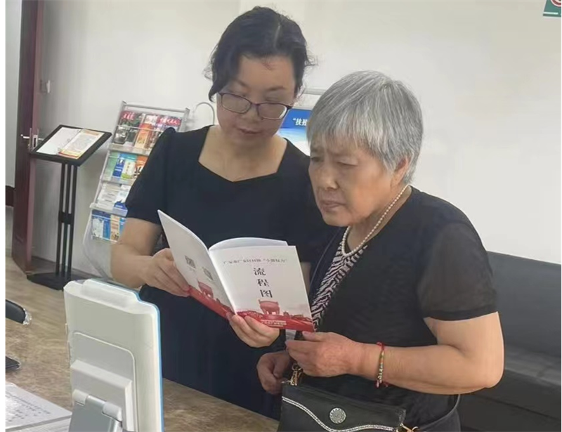 便民服务中心副主任袁敏微笑着面对前来咨询业务的居民“您好,请问您需要办理什么业务呀?”亲切的话语伴随着温暖的笑容,瞬间拉近了与群众的距离。袁敏拿着办事流程图读本走向大妈亲切地说,“嬢嬢,您莫着急,我慢慢给您说清楚这些政策和流程,保证让您明白,顺利办完。”通过通俗易懂的语言、举例等方式进行耐心解释,大妈神情渐渐舒缓,露出了安心的笑。