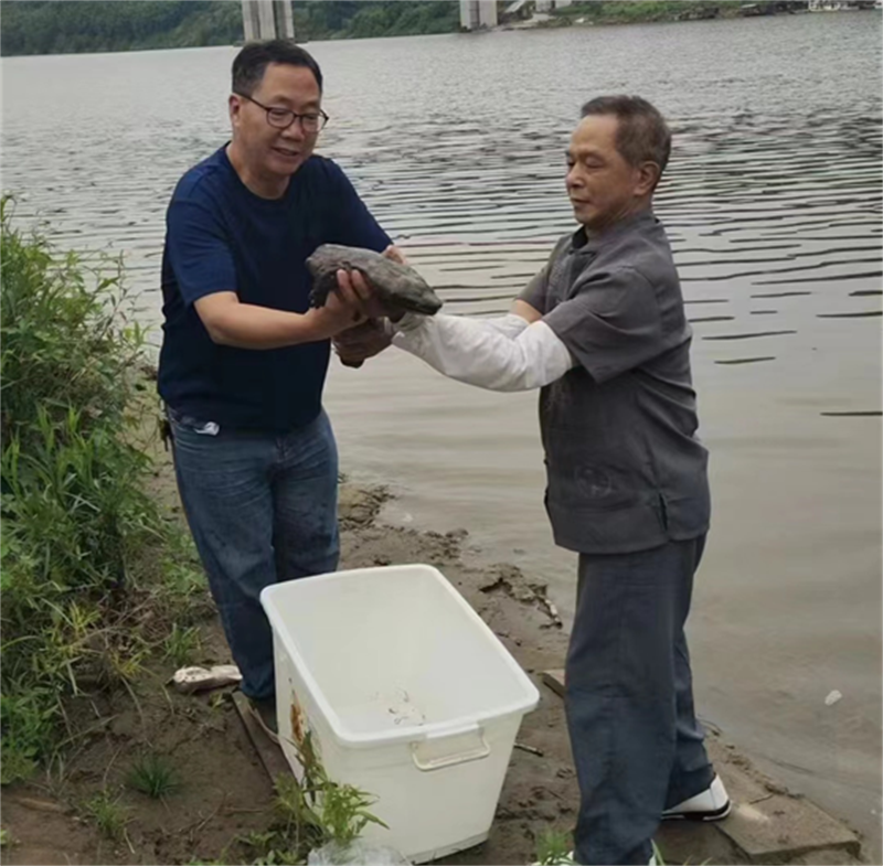 为了让娃娃鱼能尽快回归大自然,农业农村局专业人员、杨航、代锡梅、邓培林共同制定了放生方案,在广安区大龙镇寻栖江南找到了适合娃娃鱼生存的自然水域,大家怀着对生命的敬重和对大自然的尊重,轻轻地将娃娃鱼放入水中,看着它悠然地游向渠江深处,每个人心中都充满了欣慰与喜悦。