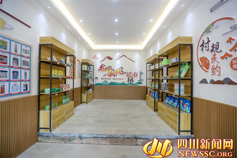 | 7月6日,在四川省广安市广安区龙台镇德山村罗家院子拍摄的红色文化展览馆内的文明新风超市。 |