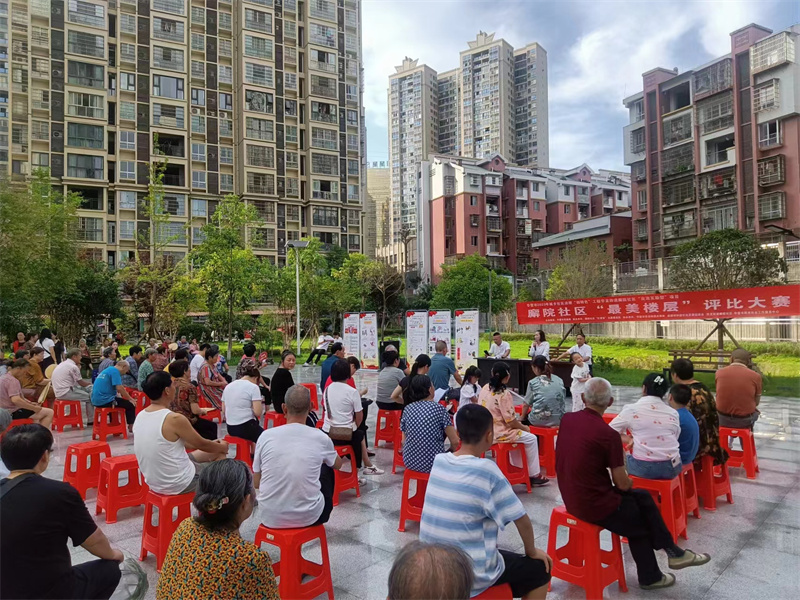 2024年7月17日上午,在华蓥市民政局指导下,华蓥龙街道华廨院社区“最美楼层”评比大赛,在“廨院社区章广二期”顺利开展。活动由“红管家”志愿服务队承办。活动邀请到华龙街道代表、廨院社区物业代表、委会代表、福源社工代表、居民代表等共同参加。