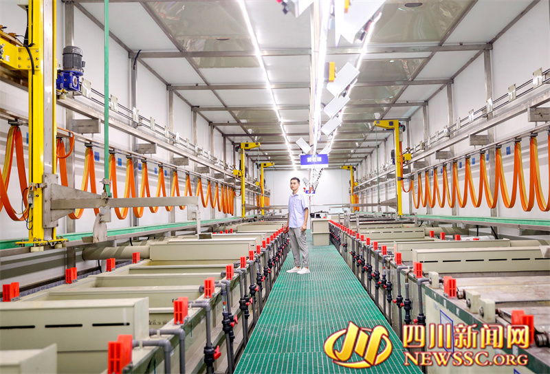 | 7月26日,在四川省广安华蓥市华蓥山经开区,从事智能化设备研发和电子信息产品生产与销售等产业的四川怡田科技有限公司的员工,在巡护智能生产线。 |
