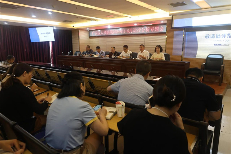 四川新闻网消息 7月24日,广安区人民医院在行政楼6楼会议室召开了2024年上半年运行分析专题会,医院党政领导班子、中层干部(含组长)参会,会议由医院党委副书记、副院长张治建主持。