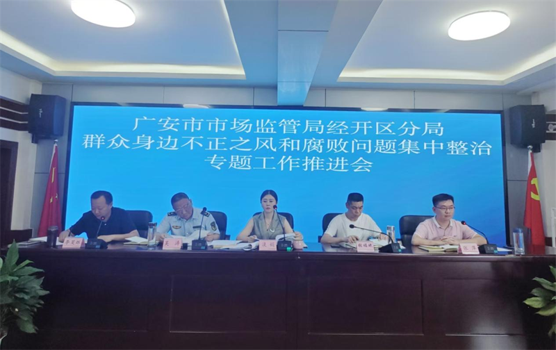 四川新闻网消息 8月2日上午,广安市市场监督管理局经开区分局组织召开群众身边不正之风和腐败问题集中整治专题工作推进会,会议传达学习了中省市相关文件及广安经开区党工委和市局关于群众身边不正之风相关会议精神。会上,各分管领导对近期重点工作做了详细部署,局长淡娟对群众身边不正之风和腐败问题集中整治工作提出要求。