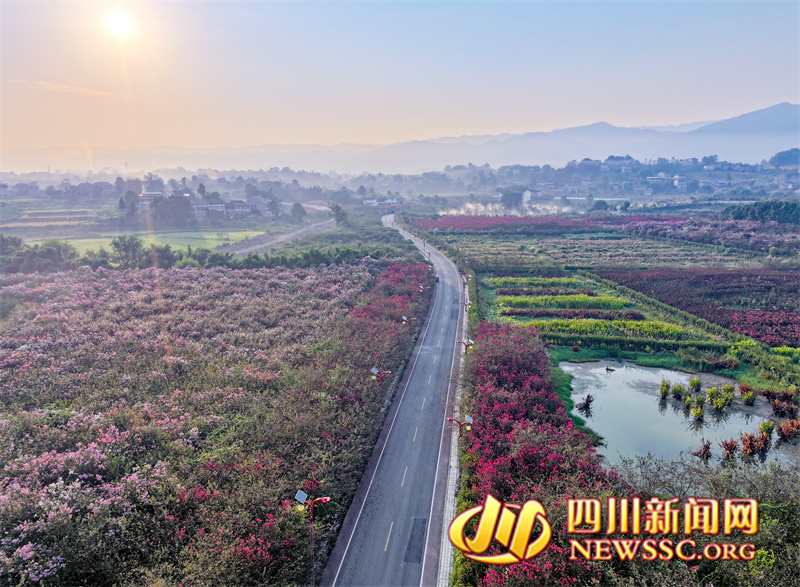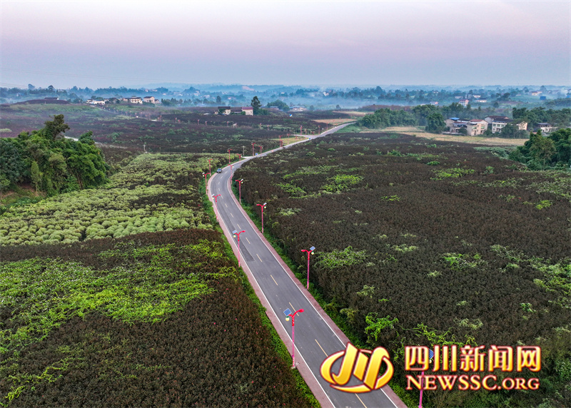 | 8月16日,在四川省华蓥市禄市镇凉水井村生态园拍摄的乡村旅游公路(无人机照片)。 |
