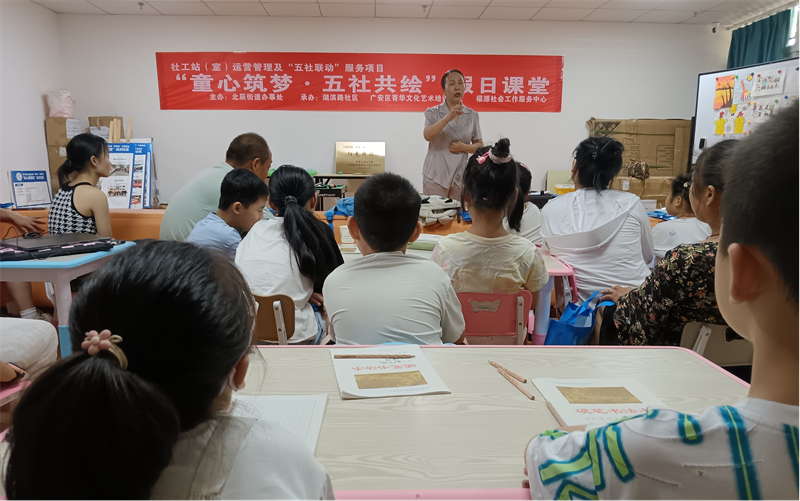 9月21日,由广安市广安区北辰街道主办、湖滨路社区携手广安区菁华文化艺术培训学校及福源社会工作服务中心联合开展“童心筑梦·五社共绘”假日课堂。