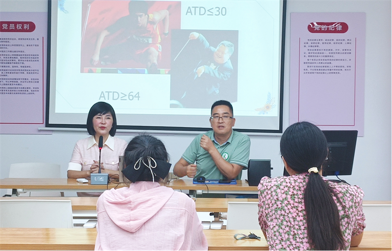 | 家庭教育知音老师(图左)向家长们传授家庭教育知识。 |