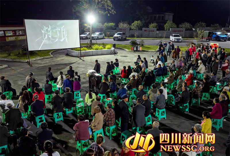 | 10月23日,四川省广安华蓥市高兴镇村民在花庙嘴村文体广场的“文化夜市”观看“坝坝电影”。 |
