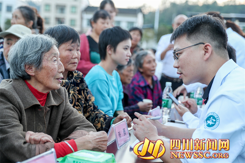 | 10月23日,四川省广安华蓥市“文化夜市”的志愿者在高兴镇花庙嘴村文体广场,为村民讲解卫生与健康知识。 |