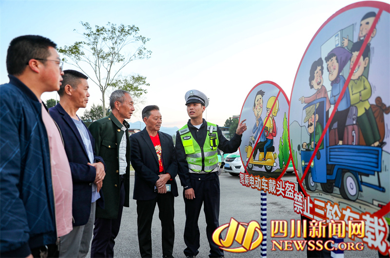 | 10月23日,四川省广安华蓥市“文化夜市”的志愿者在高兴镇花庙嘴村文体广场,向村民宣讲交通安全知识。 |