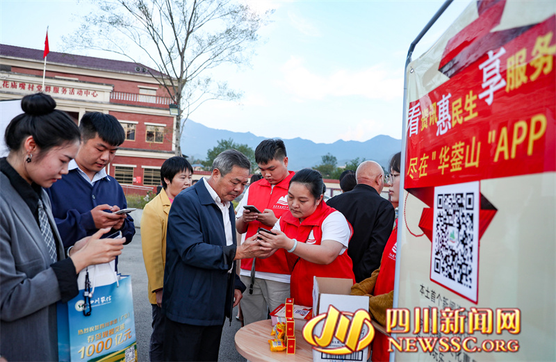 | 10月23日,四川省广安华蓥市“文化夜市”的志愿者在高兴镇花庙嘴村文体广场,教村民下载和使用本土首个新闻资讯APP。 |