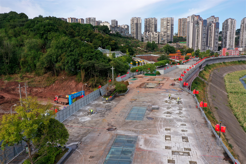 深秋的渠江,水波粼粼,宛如一幅流动的画卷。10月22日,记者来到位于滨江路框廊平台东南段的沉浸式宋韵商街项目现场,只见工人正在有序地进行场地平整和拆改以及基础浇筑工作。