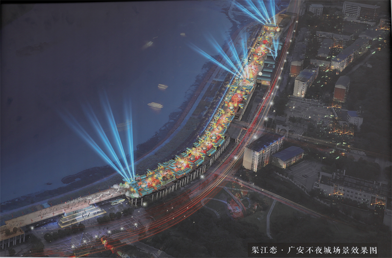 “‘千年渠江恋·广安不夜城’项目把广安千年历史文化融入江景中,将展现广安古今辉映的独特魅力。”项目策划总监陈莹介绍,未来,游客可乘坐游船,夜游渠江两岸,感受历史与现代交织的梦幻体验,领略渠江夜景的绚丽多姿。
