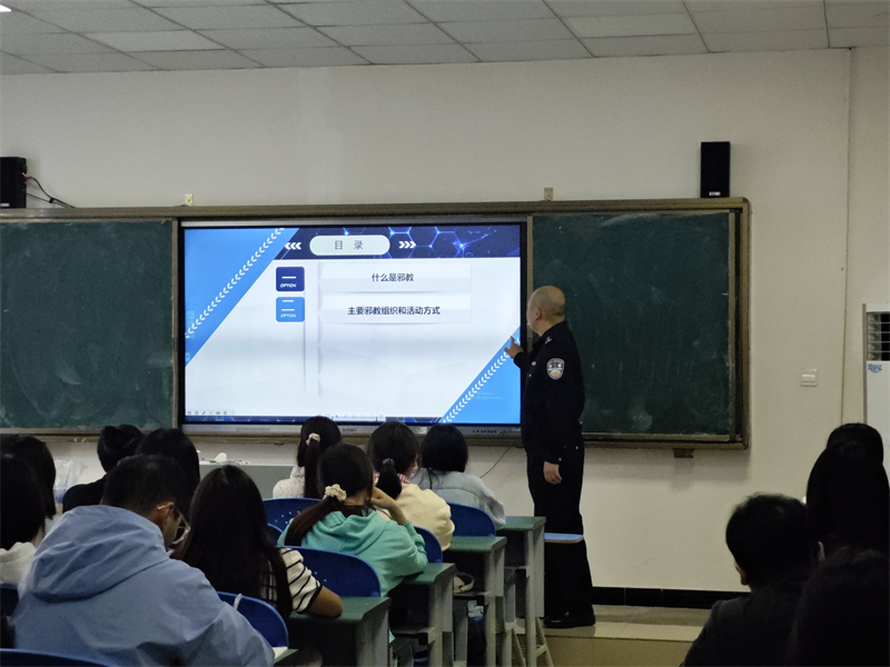 讲座上,公安民警围绕“什么是邪教”“主要邪教组织和活动方式”“邪教如何冒用宗教”等方面,结合本地实际案例,深入浅出地向学生们讲解了邪教的本质、特征和危害。并通过一张张触目惊心的图片和一个个发人深省的故事,让同学们深刻认识到邪教不仅会对个人的身心健康造成严重伤害,对个人财产造成严重损失,还会破坏家庭和谐、扰乱社会秩序。