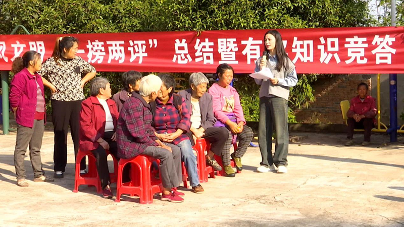 走进岳池县乔家镇韩婆岭村文化广场,一场“移风易俗树新风 共建和美韩婆岭”群众文化主题活动正在有序进行。活动以乡村振兴有奖知识竞答开始,吸引了众多村民前来参加;随后,进行了“一榜两评”结果公示。通过评比,该村6户五星文明户、6户最佳清洁户赢得了此次“一榜两评”大奖。