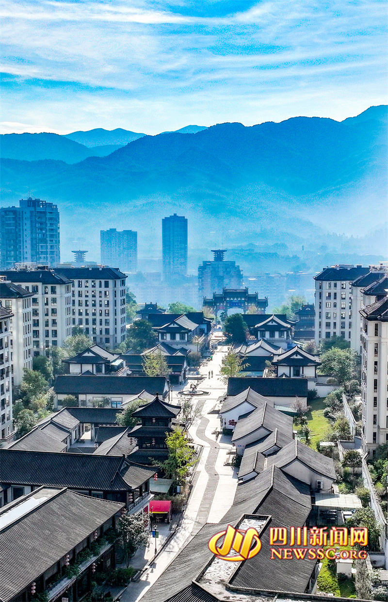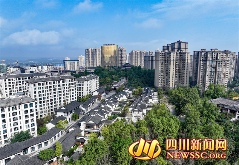| 11月5日,四川省广安华蓥市古色古香、文脉悠长的天上街市,与周边的现代建筑互相映衬,使城市显得格外厚重和美。 |