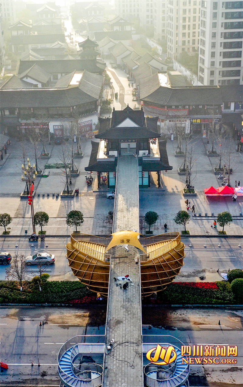 让留连忘返的是“天上街市”北侧的安丙主题文化公园。公园占地60余亩,是一座以南宋著名历史人物安丙为主题的城市公园,主要由皛然殿、安丙文化墙和安公廊桥、安丙铜像等组成。安丙文化墙的紫铜浮雕仿佛是一条穿越时空的隧道,默默讲述着安丙的丰功伟绩,让人打破时空的桎梏,阅尽传奇与精彩。