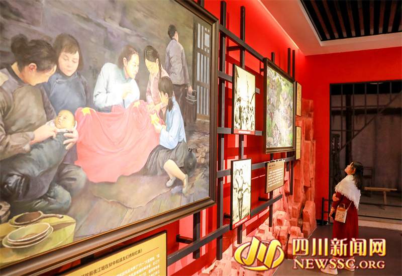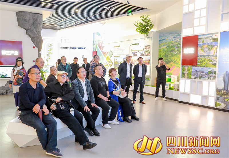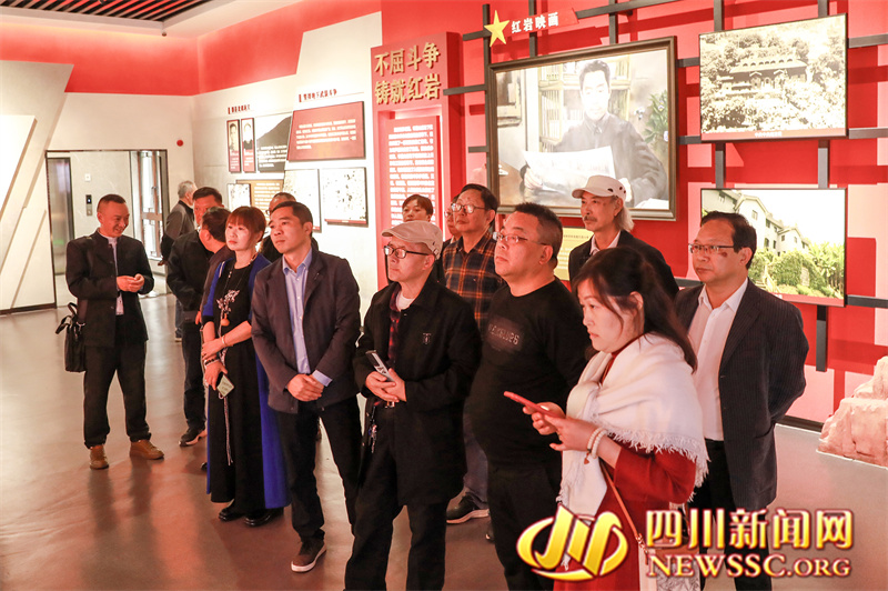 | 在川渝两地开展的“深入生活,扎根人民”主题采风活动中,作家们在华蓥市禄市镇的“三红”广场展厅参观。 |