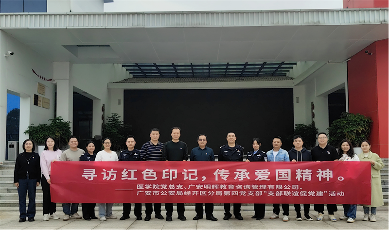 近日,广安经开区公安分局第四党支部与广安职业技术学院医学院党总支、广安明辉教育咨询管理有限公司到武胜县红岩英雄文化陈列馆开展“寻访红色印记,传承爱国精神”支部联谊促党建主题党日活动。