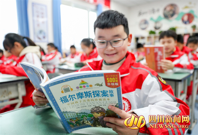 | 广安启睿第一实验学校“柴云振班”的学生,在阅读文阳清等爱心人士送来的课外书籍。 |
