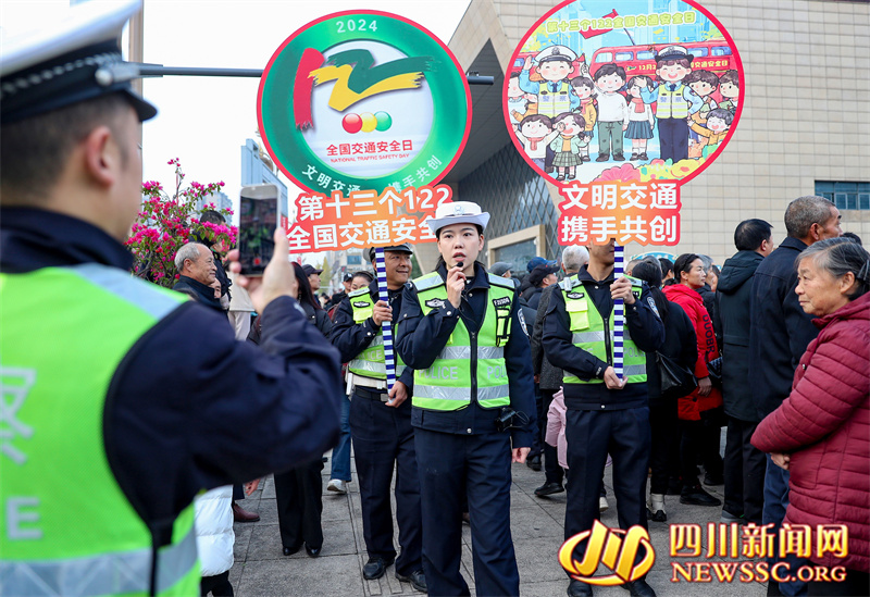 | 11月27日,四川省华蓥市公安局交通警察大队网红民警小姐姐在街头向市民现场直播宣讲交通安全知识。 |
