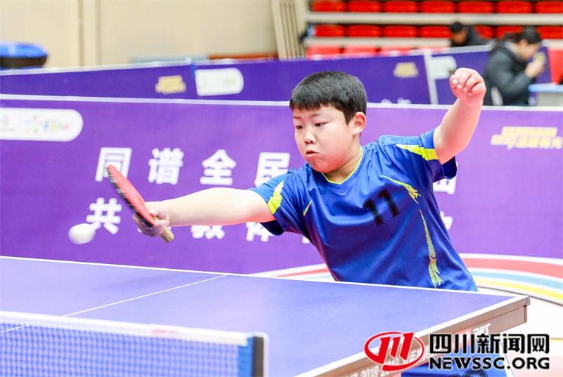 | 12月19日,四川省华蓥市冬季小学生乒乓球比赛的选手在奋力拼搏。 |