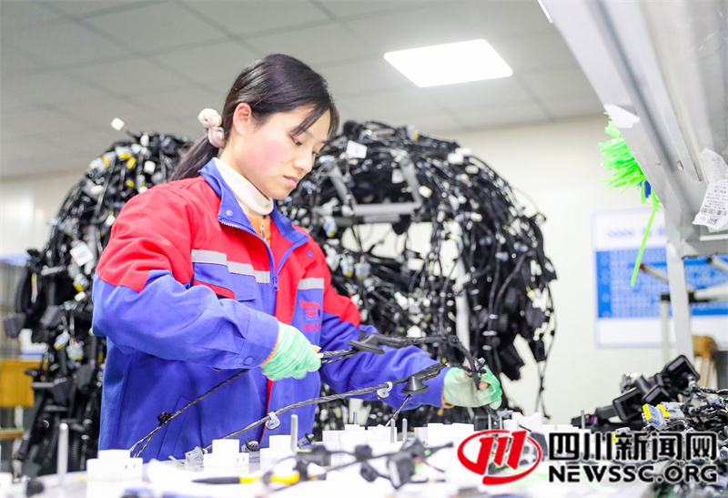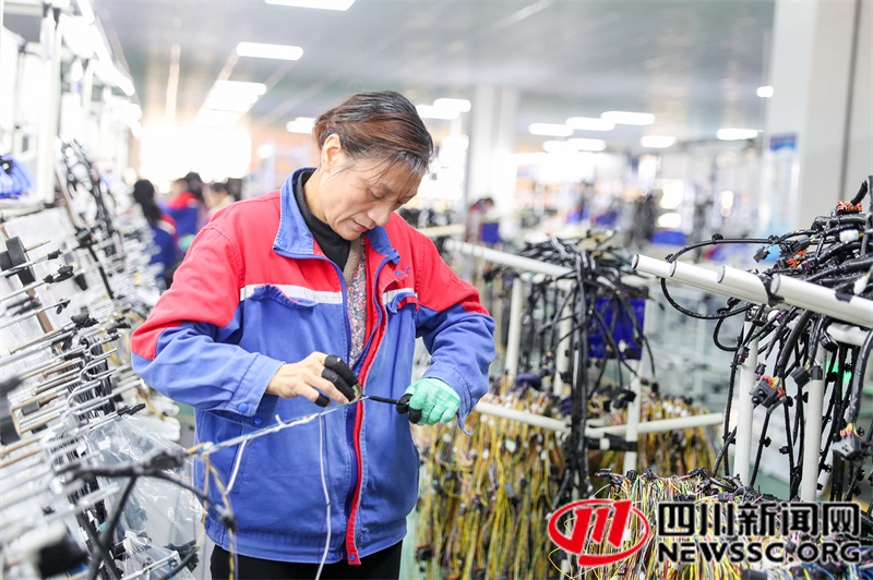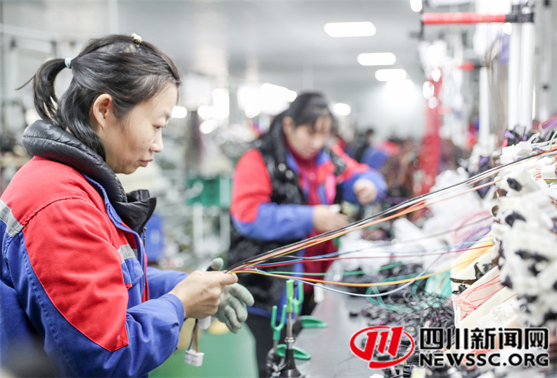 | 12月27日,在四川省华蓥市华蓥山经开区民营企业大千电子厂的线束车间,工人正在进行线束绕线作业。 |