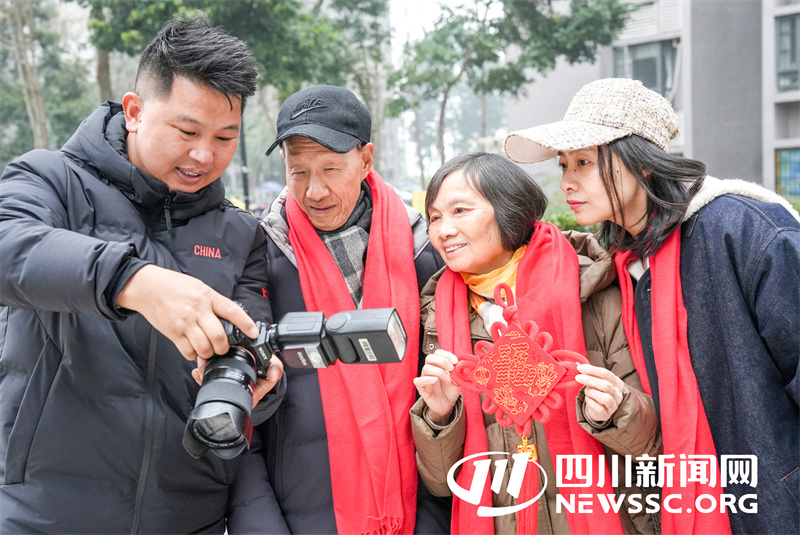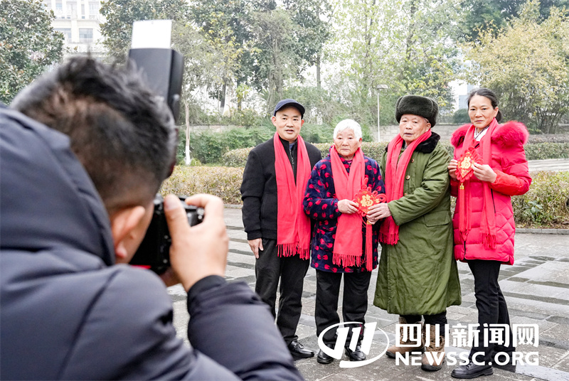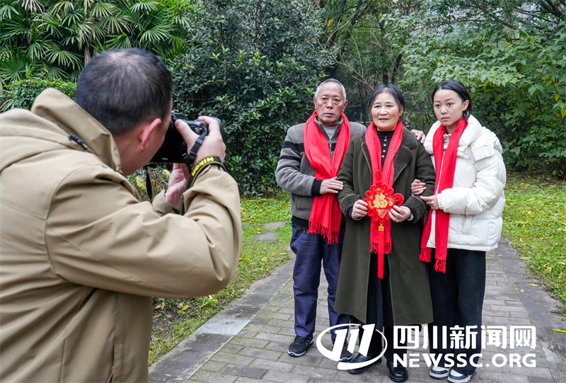 | 1月4日,四川省广安华蓥市“四川好人”殊荣获得者何昌淑(中),与家人在接受摄影志愿者义务为他家拍摄“全家福”。 |