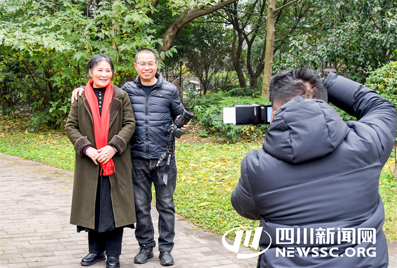 | 1月4日,四川省广安华蓥市的摄影志愿者与该市“四川好人”殊荣获得者何昌淑(左)留影。 |