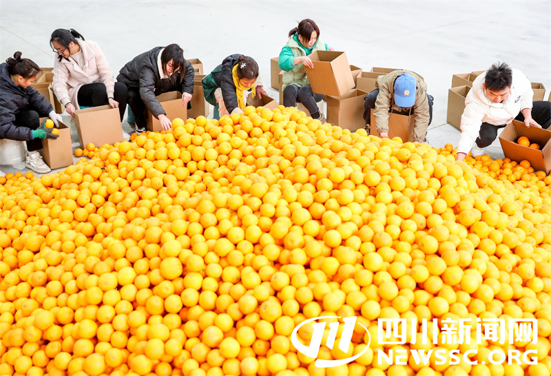 | 1月6日,四川省华蓥市“京东云仓”电商产业园的工作人员,选装销往节日市场的当地特色时令水果脐橙、蜜桔等“迎春水果”。 |