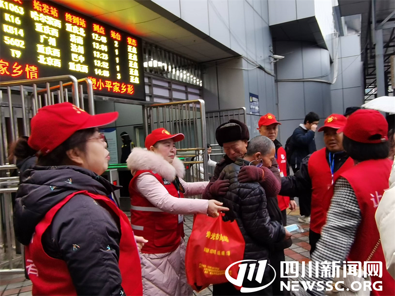 当天上午9时,一列K15次列车从山东济南缓缓驶入广安火车站的站台。列车上,有思念家乡华蓥多年的王云贵和寿光市社会救助综合服务中心的工作人员;站台上,有等候多时接站的华蓥市让爱回家志愿者协会志愿者;出站口,有思念王云贵多年的家人们。一场历时31小时、跨越1600多公里的“双向奔赴的爱与团圆”在此刻上演。