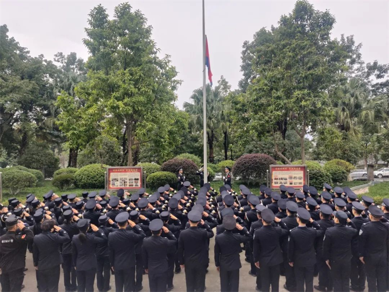 近日,广安经开的民(辅)警们已整齐列队,警容严整。三名护旗手迈着整齐有力的步伐护送警旗走向升旗台,伴随着激昂的中国人民警察警歌《人民公安向前进》,警旗冉冉升起、迎风飘扬。全体民辅警肃立注目,眼神坚毅,向警旗致以最崇高的敬礼,每一个动作都饱含着对职业的敬重与对使命的执着,以这种庄严的方式开启了充满荣耀的一天。