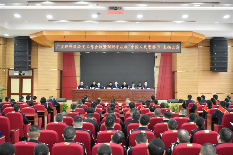下午,一场盛大的公安工作会议暨2025年庆祝“中国人民警察节”表扬大会在庄严的国歌声中拉开帷幕。会上,现场宣读了广安经开区党工委管委会关于《对近五年公安工作成绩突出的集体及个人予以表扬的通报》。与会领导为获奖的先进代表颁发奖牌、证书。会议在激昂的《人民公安向前进》歌声中落下帷幕,强烈的荣誉感进一步激发了全体民警、职工、辅警干事创业、赶超先进、创稳护安的激情与动力。