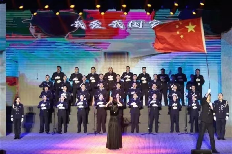 合唱比赛中,40名参演人员身着盛装,齐声高唱《国家》。“我爱我的国,我爱我的家,我爱我的国家……”的歌声引起广泛共鸣,唱出了人民公安为人民,以老百姓“小家”的平安幸福,构筑祖国“大家”的繁荣昌盛的坚强决心,也唱出了经开公安人守护经开美好未来的豪迈自信。