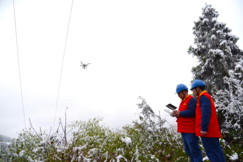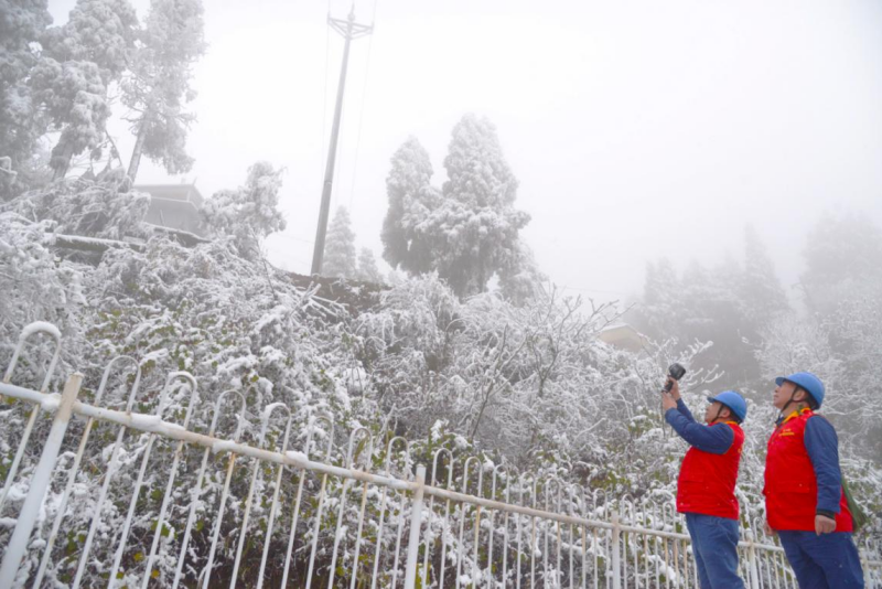 巡检过程中,队员们利用望远镜、红外测温仪等设备冒雪对线路通道、导线覆雪覆冰、接点温度、线路拉线、接地装置等进行了细致检查,做到设备缺陷“早发现、早上报、早治理”。同时队员们还采取“人巡+机巡”的巡检方式,对山区电力设施进行巡视和监测,排查线路杆塔积雪、覆冰、树障等情况,全力确保低温冰雪天气下线路设备安全稳定运行,有效预防雨雪天气电网设备事故发生。