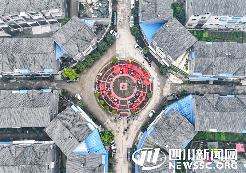 | 1月15日,四川省广安市参加“红色联姻,福泽万家”新时代文明实践志愿服务“六进”活动的书法志愿者,在华蓥市永兴镇马架坪村文体广场,为返乡团年的务工人员和乡亲义务书写春联和“福”“春”字等门贴。(无人机照片) |