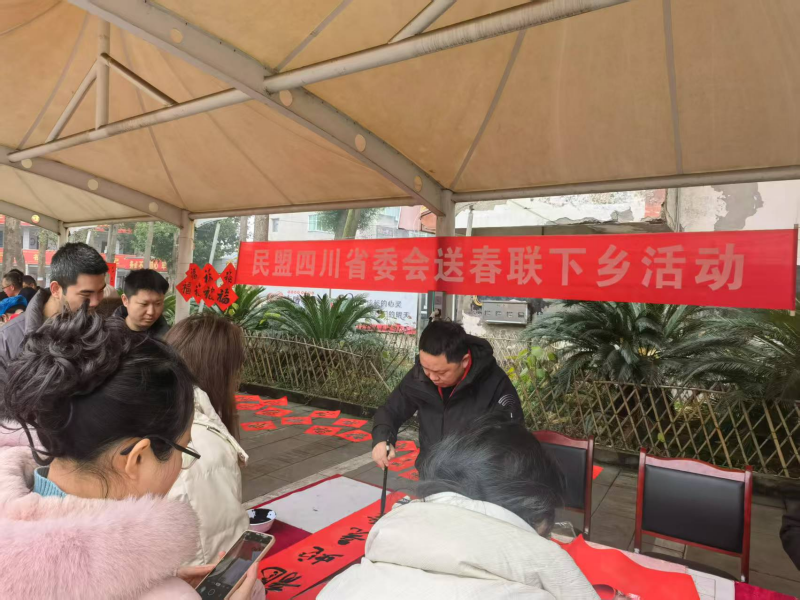 为助力广安(武胜)基地第三轮合作共建,帮助困难家庭欢度新年,1月15日,民盟四川省委会组织到定点帮扶的武胜县飞龙镇梅托村开展迎春慰问及送春联下乡活动。民盟四川省委会常委、民盟广安市委会主委、市人大常委会副主任贺宗飞,中共广安市委统战部副部长、市工商联党组书记朱大均,民盟广安市委会秘书长王莹莹及四川民盟书画院广安分院部分书画界盟员参加活动。