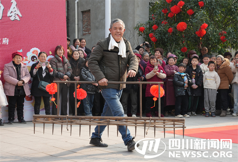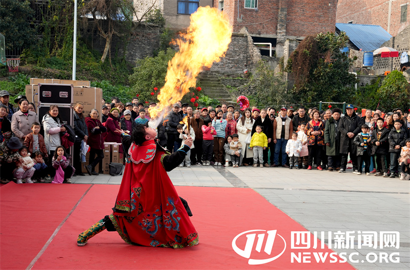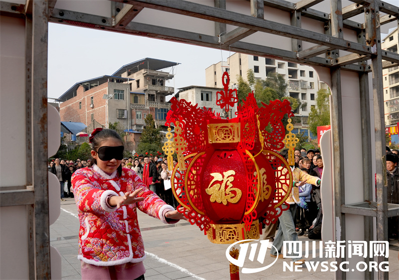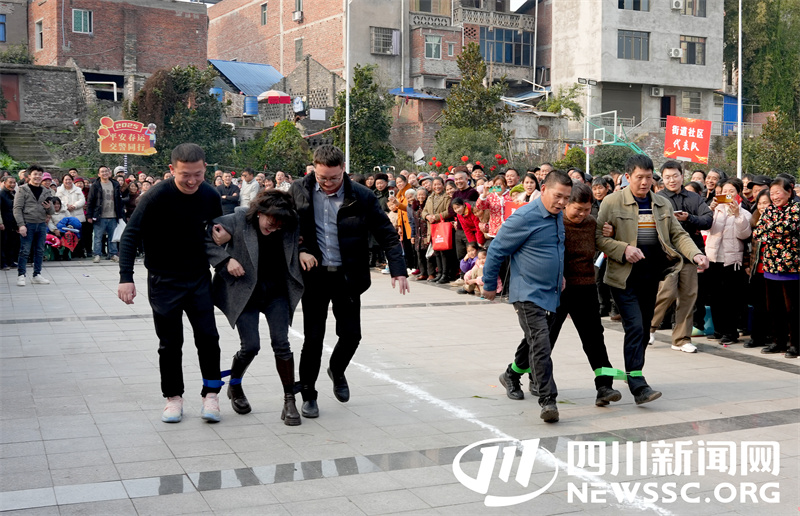 川剧变脸、蒙眼摸福字、三人四足携手向前、趣味拔河……一个个趣味十足的节目轮番上演,为节日增添了喜庆欢乐的气氛。