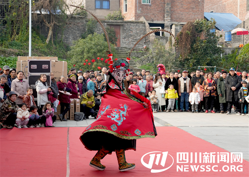| 1月20日,四川省华蓥市永兴镇村民在欣赏川剧变脸。 |
