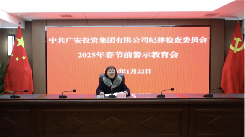 1月22日,广安投资集团召开2025年春节前警示教育会,集团党委委员、纪委书记,驻广安投资集团纪检监察组组长李桂琼主持会议并讲话,全体中层管理人员、各党总支、党支部纪检委员等70余人参加会议。